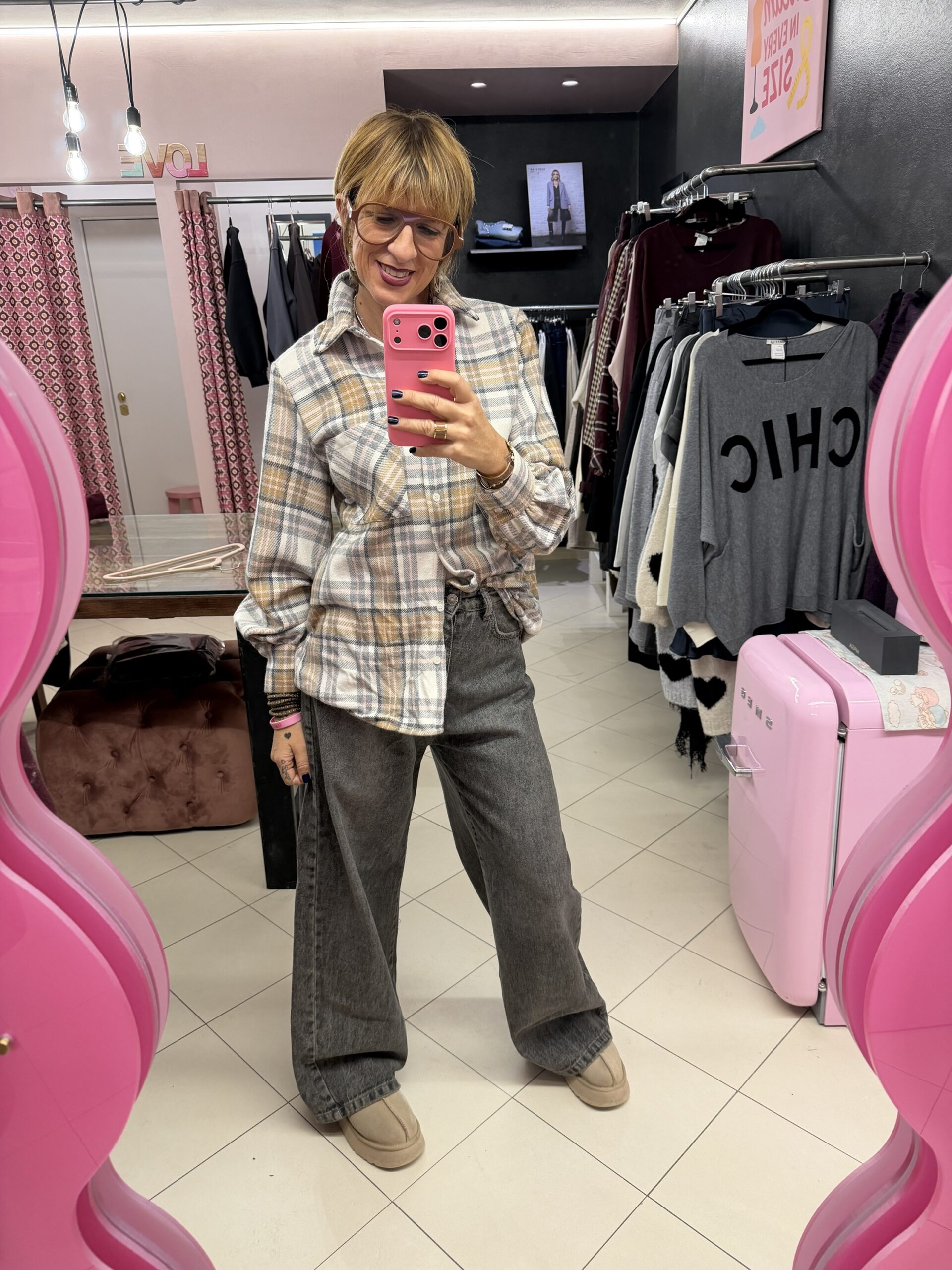 Camicia scozzese rosa