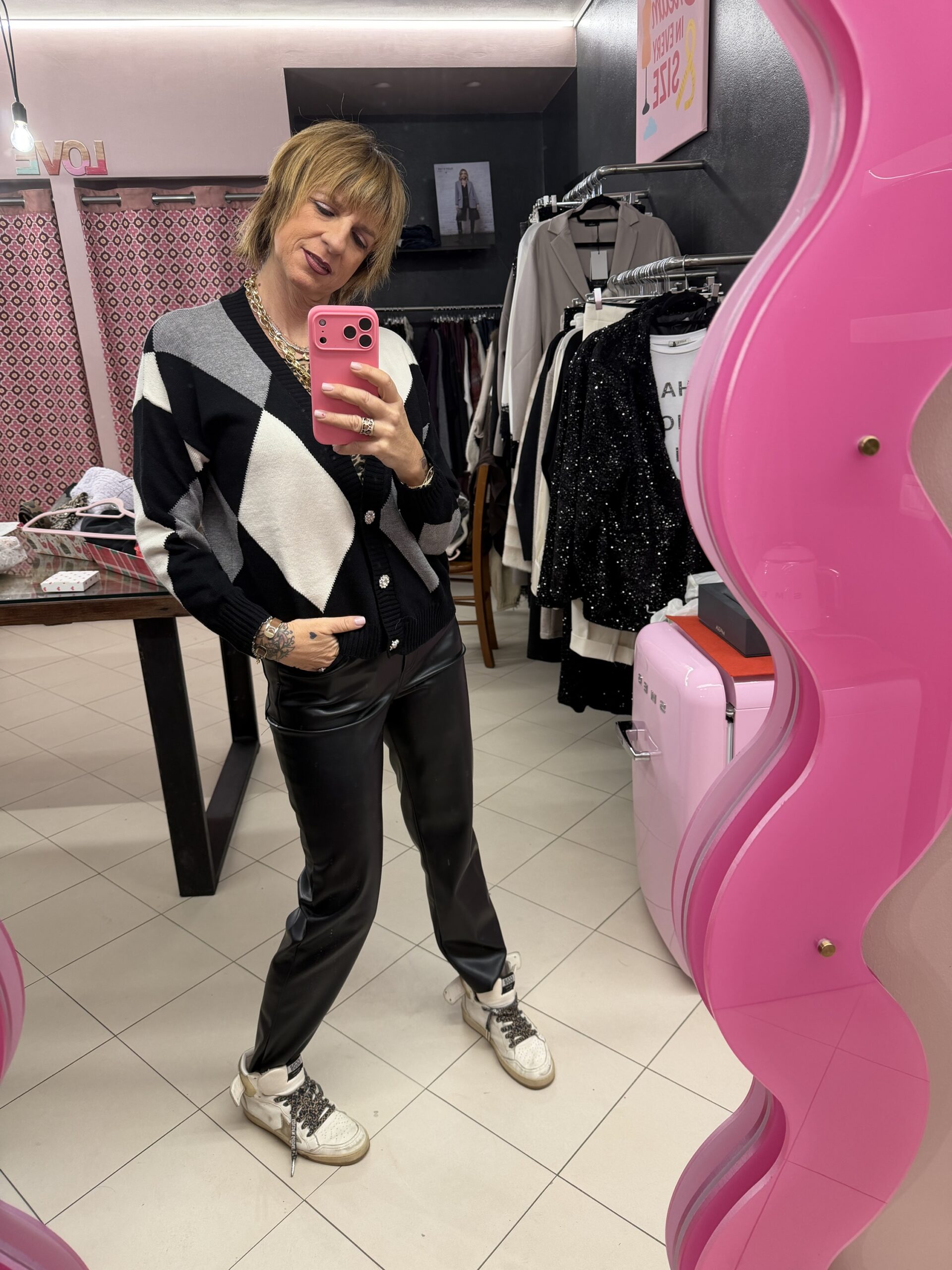 Cardigan losanghe nero e grigio