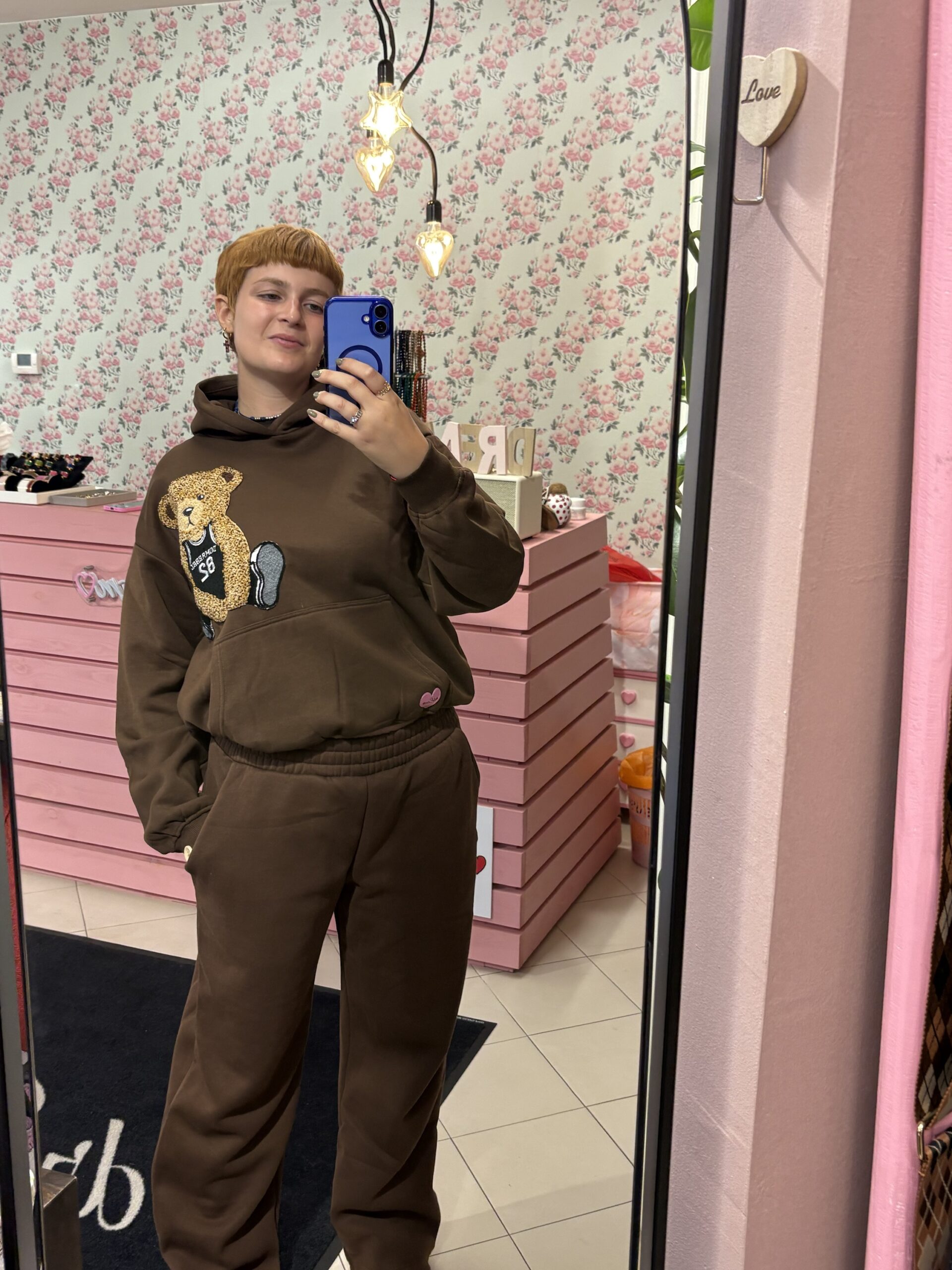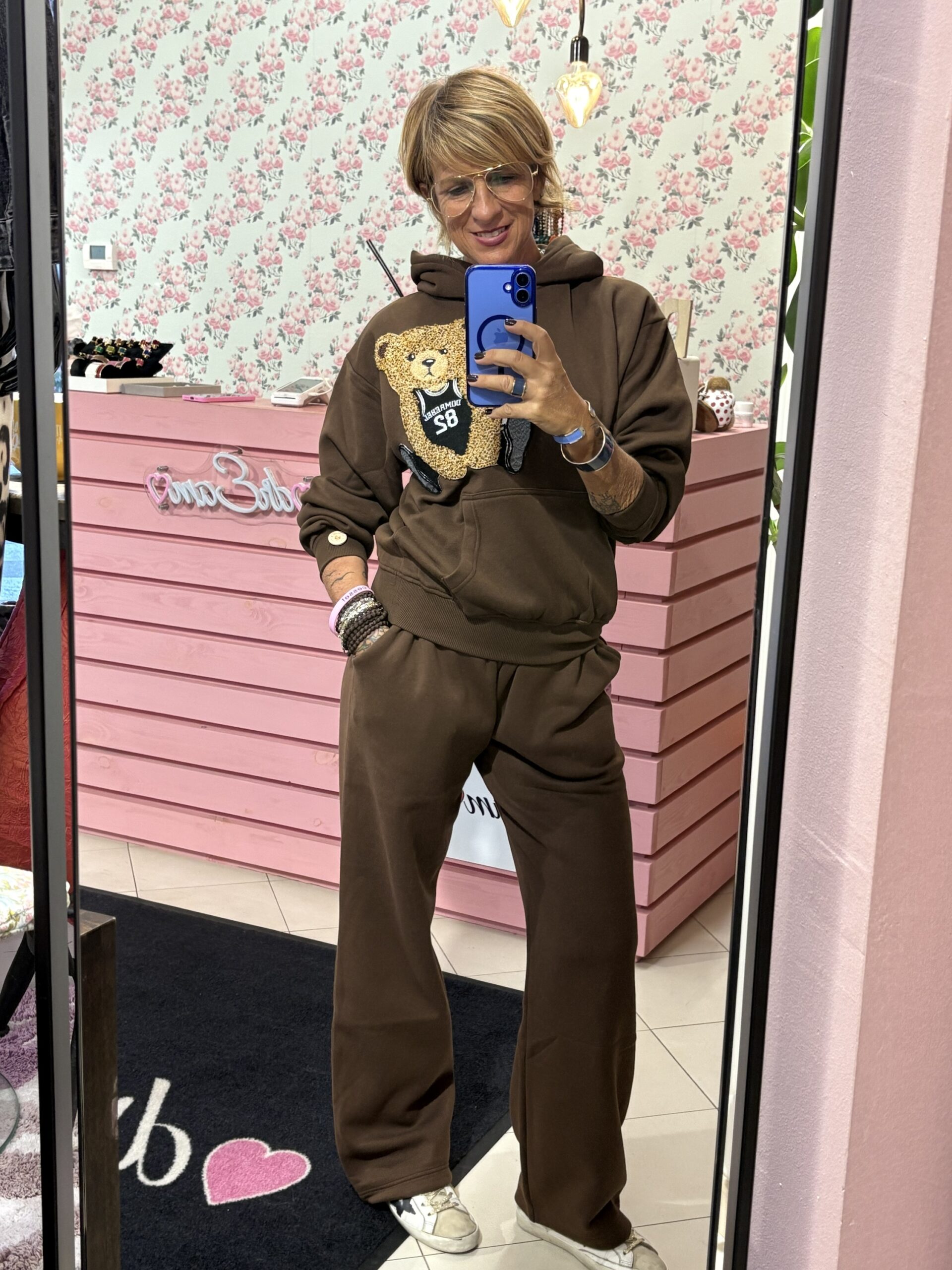 Con il nostro teddy sul cuore, cuoricino in basso e bottoncino sul polso della manica