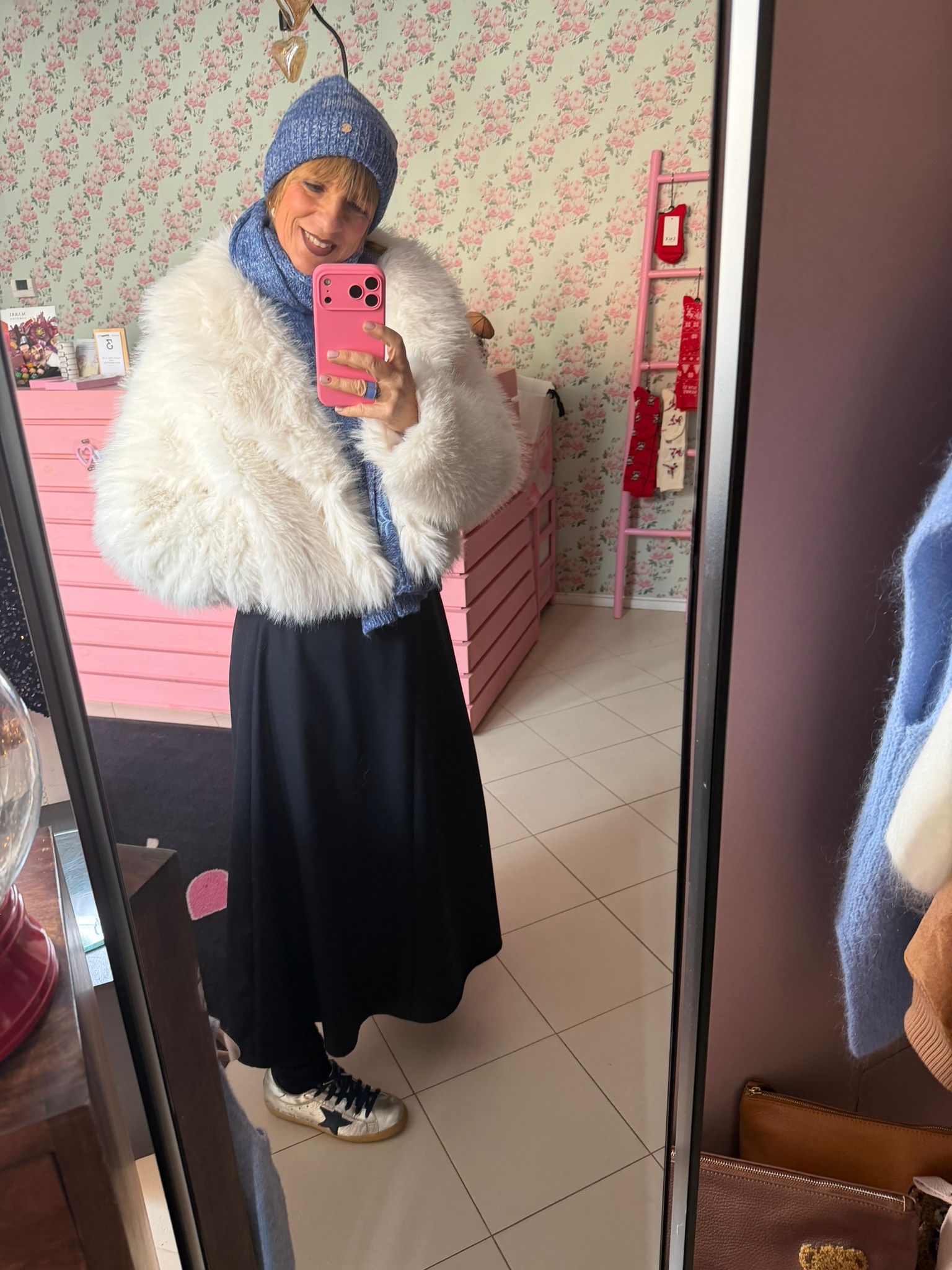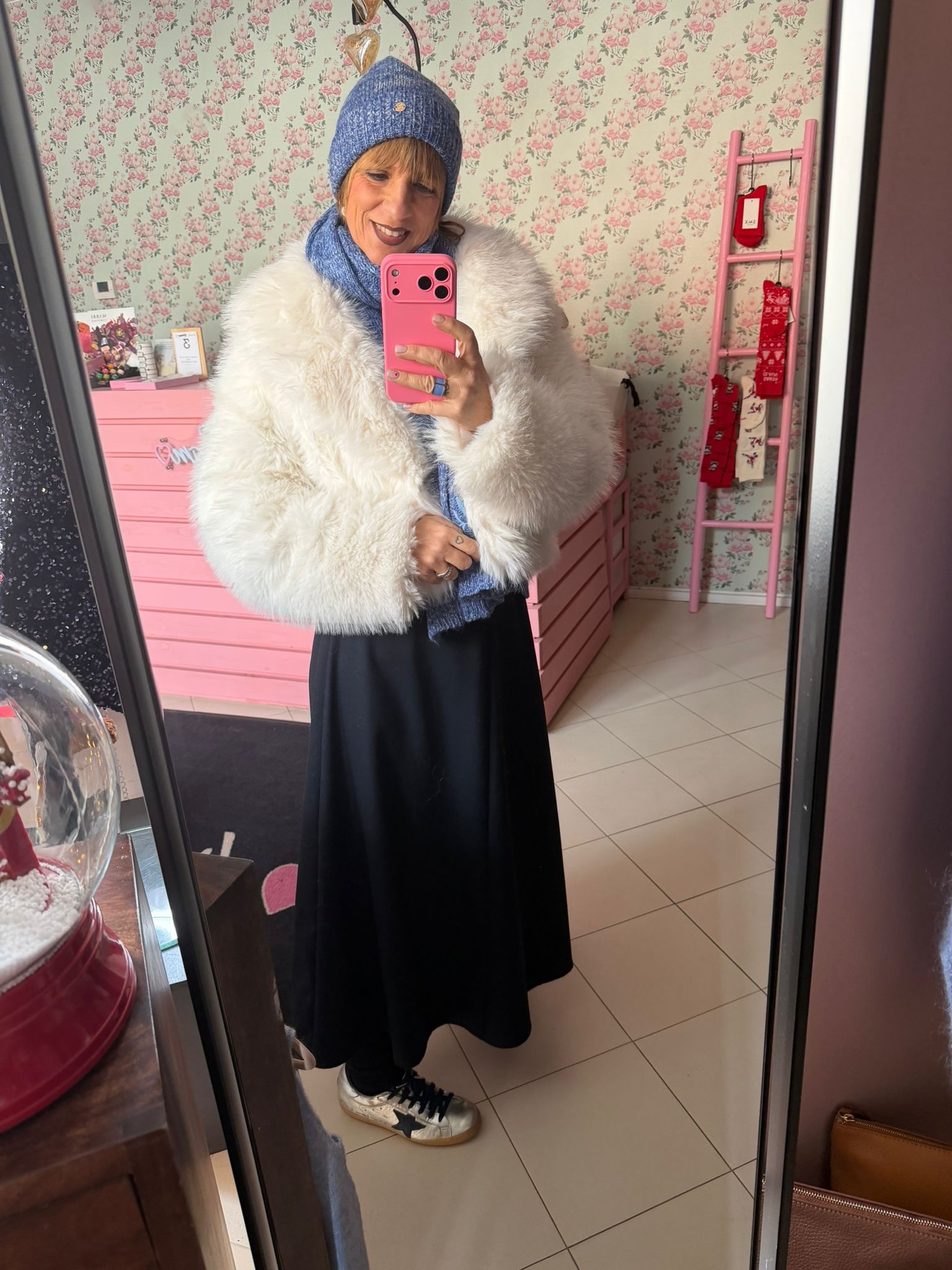 Pelliccia corta, variante panna morbida, calda e molto chic