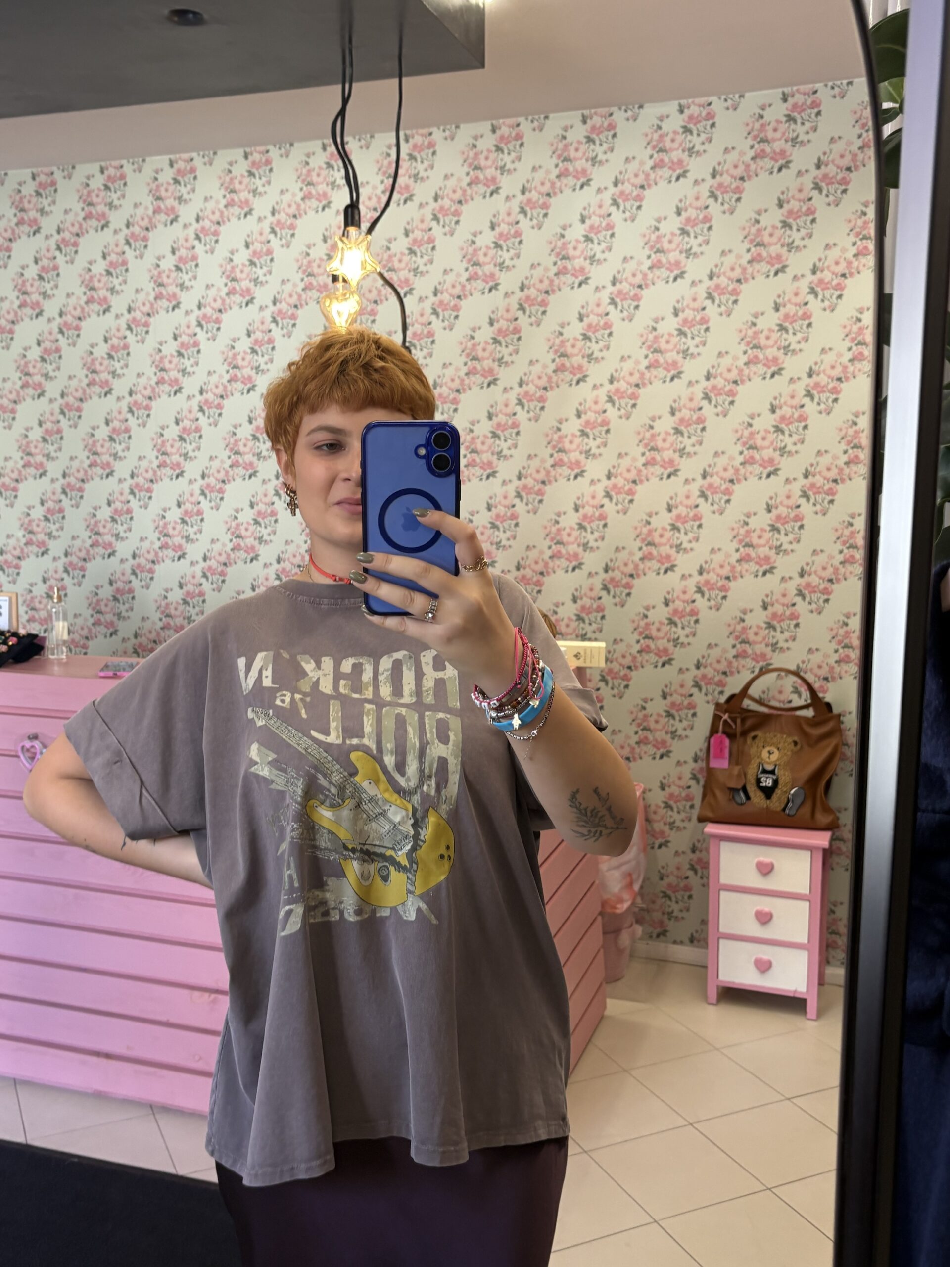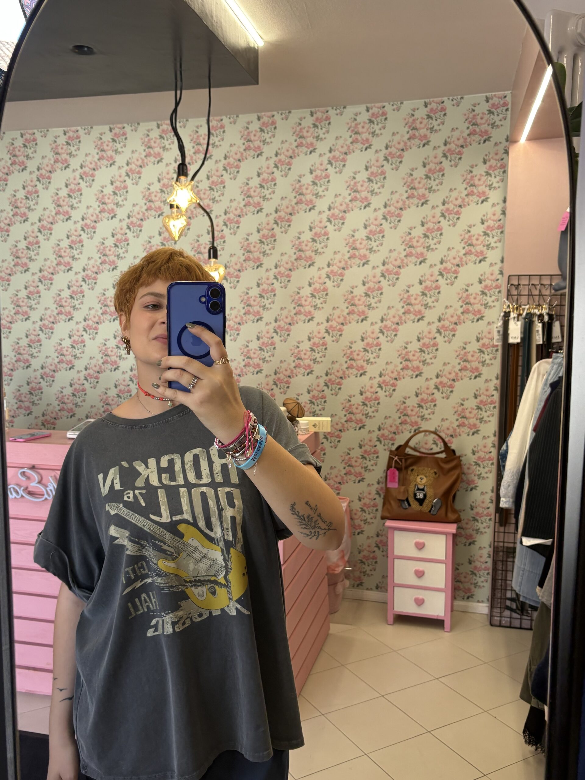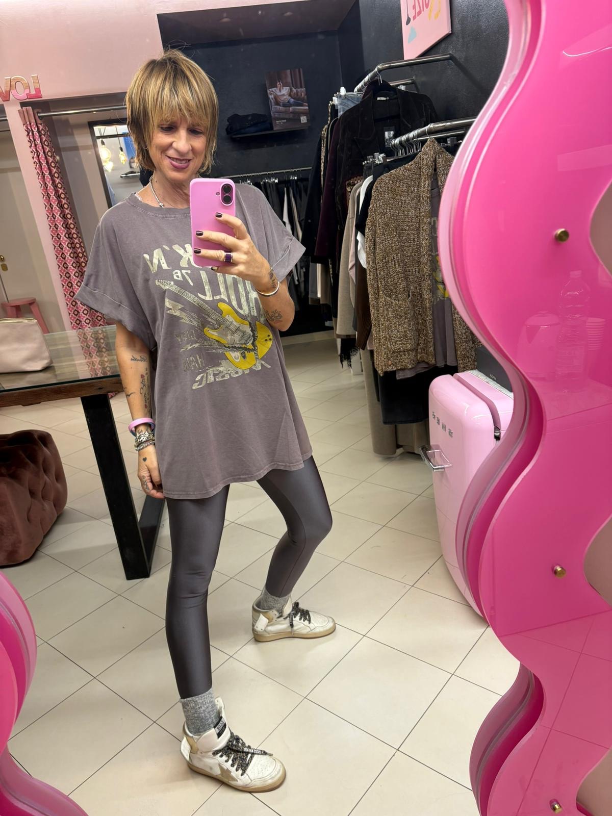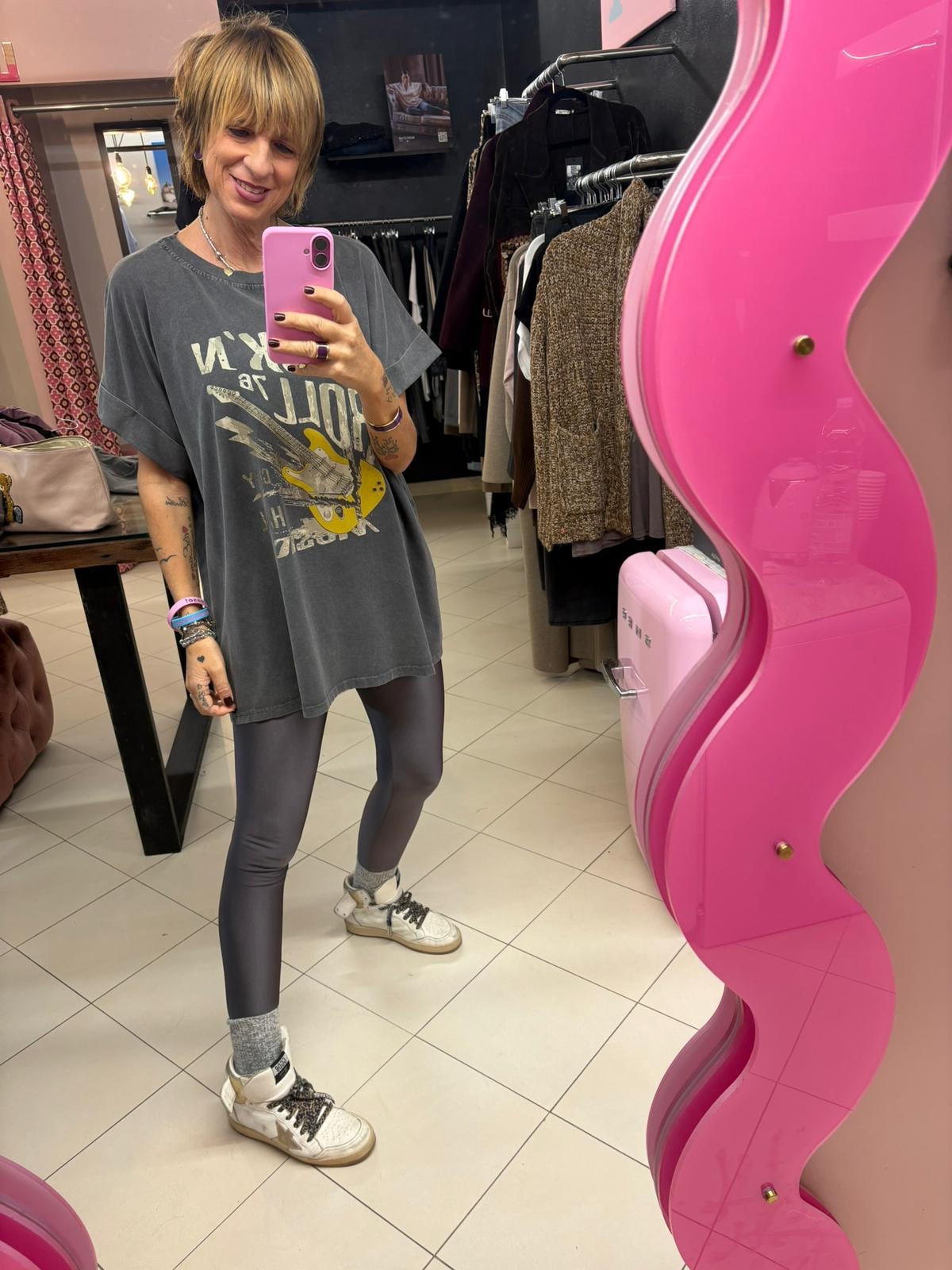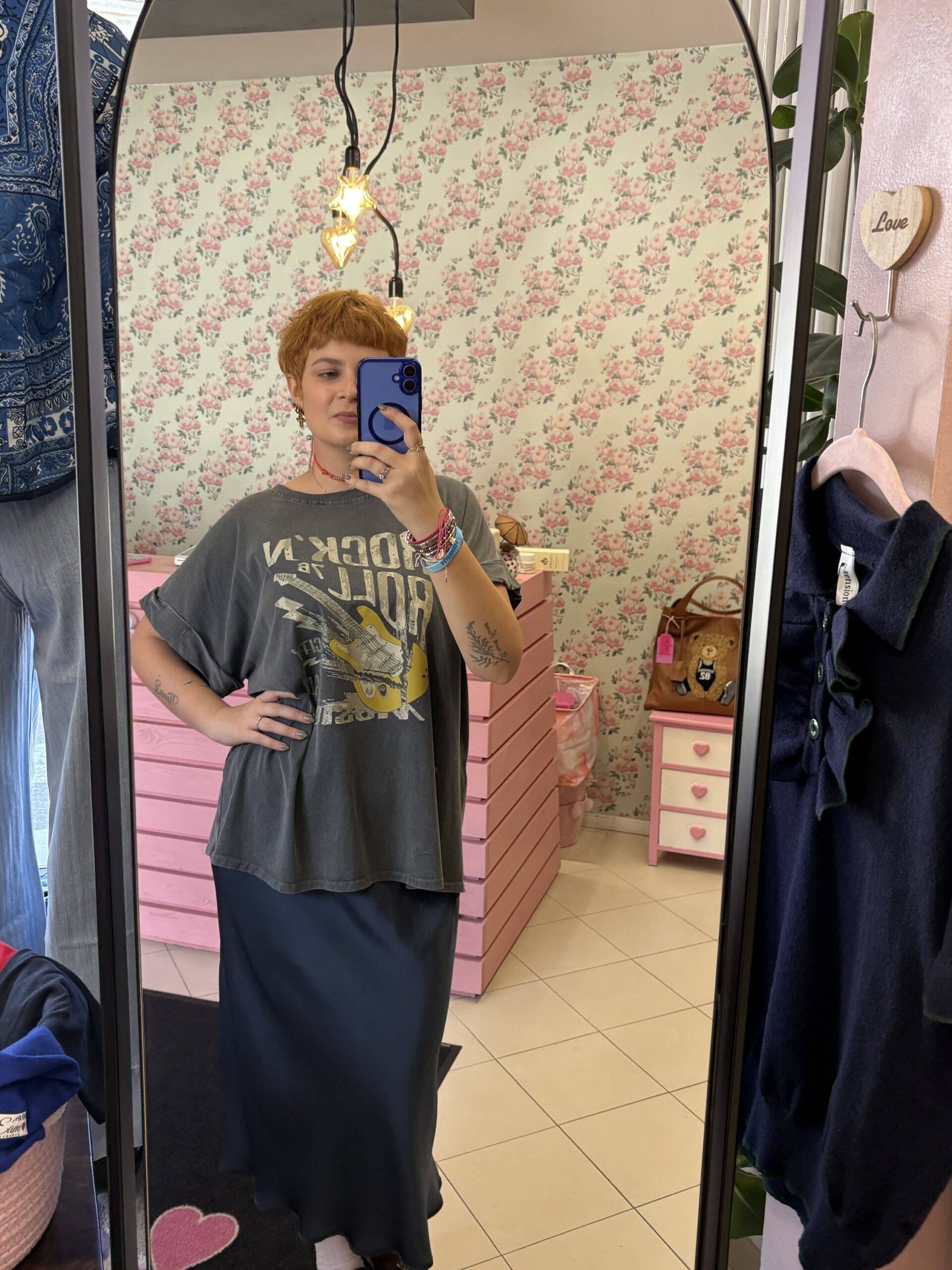T-shirt in cotone con stampa centrale vestibilità curvi fino a una misura 54 piena, semplice ma ad effetto perfetta per i look che vanno adesso di tendenza comodissima e bellissima anche abbinata alle gonne di Satin come si vede in foto